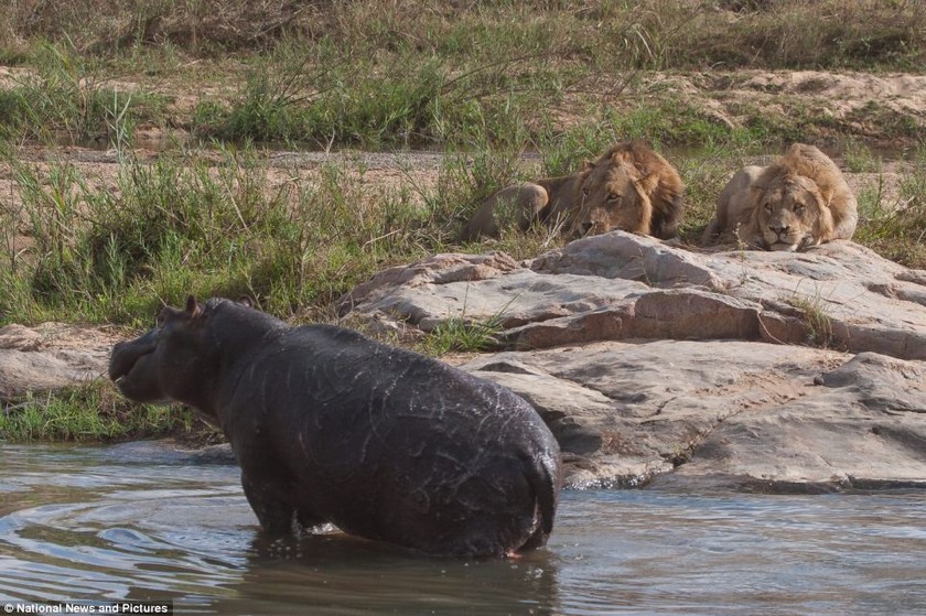 Ο ιπποπόταμος έκανε ένα μυθικό τρέξιμο μέσα στο ποτάμι για να επιτεθεί στα λιοντάρια, τα οποία γλίτωσαν για λίγα εκατοστά.
