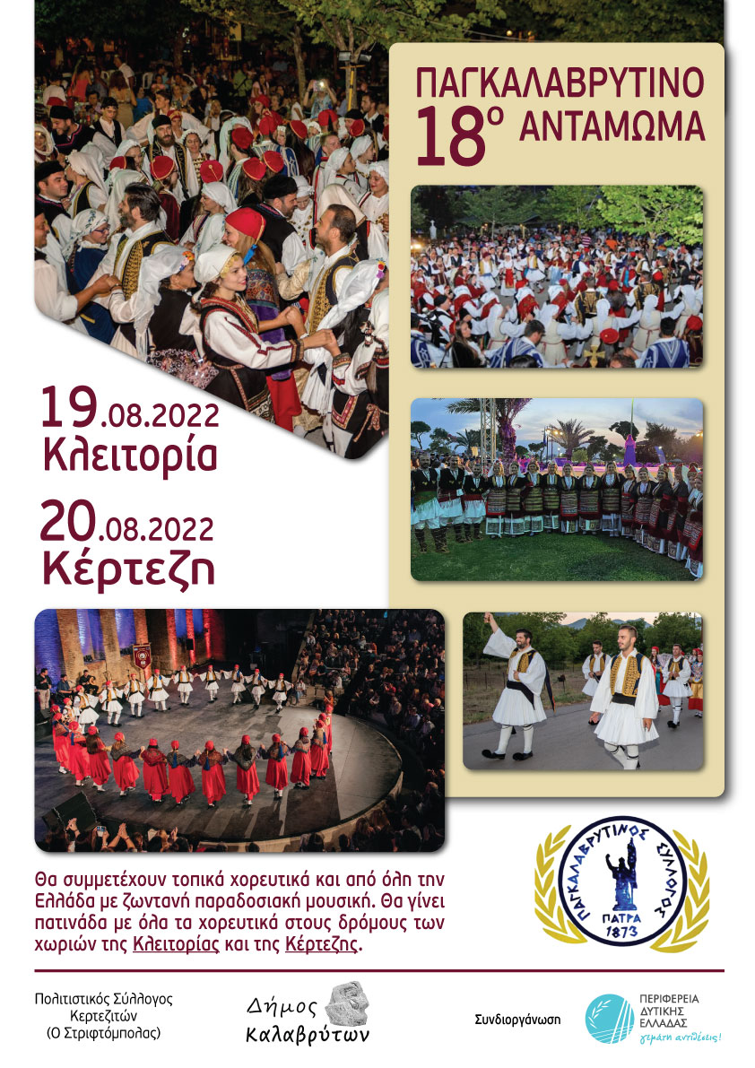 14 Χορευτικά συγκροτήματα και περισσότερους από 300 χορευτές με τις παραδοσιακές τους φορεσιές ,ετοιμάζεται να υποδεχτεί την Παρασκευή και Σάββατο 19 και 20 Αυγούστου 2022 στην Κλειτορία και Κέρτεζη ,αντίστοιχα, γεμίζοντας τους δρόμους και τις πλατείες των χωριών με χρώματα, έτοιμους να δώσουν ο καθένας το δικό του στίγμα ,χορεύοντας χορούς από όλη την Ελλάδα.