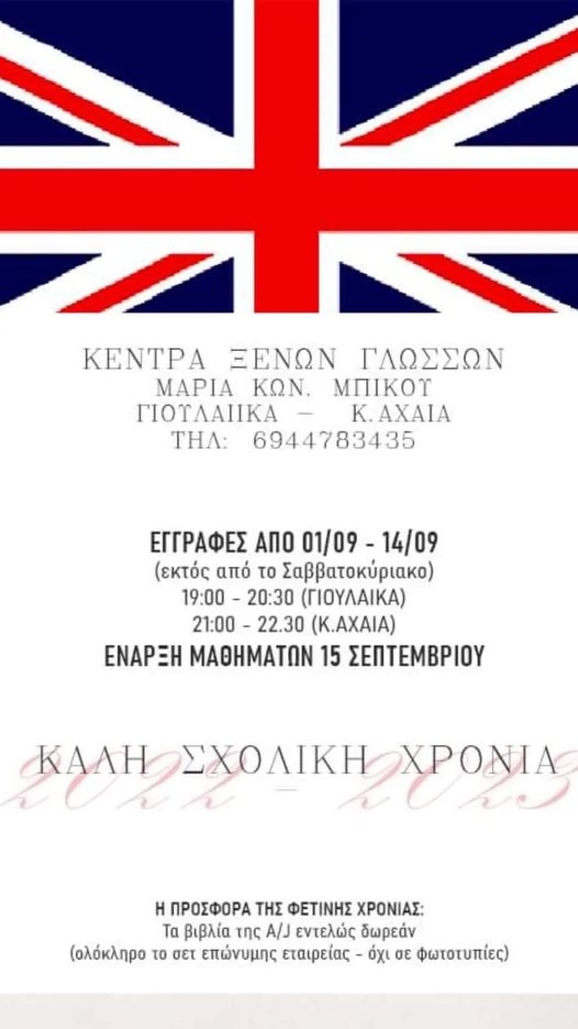 Οι εγγραφές για τη νέα σχολική χρονιά ξεκινούν 1η Σεπτεμβρίου ενώ τα μαθήματα ξεκινούν στις 15 Σεπτεμβρίου.