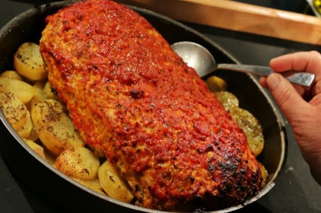 Ψήνουμε για επιπλέον 30 λεπτά για να μαλακώσουν οι πατάτες και να ψηθεί μέχρι μέσα το ρολό.