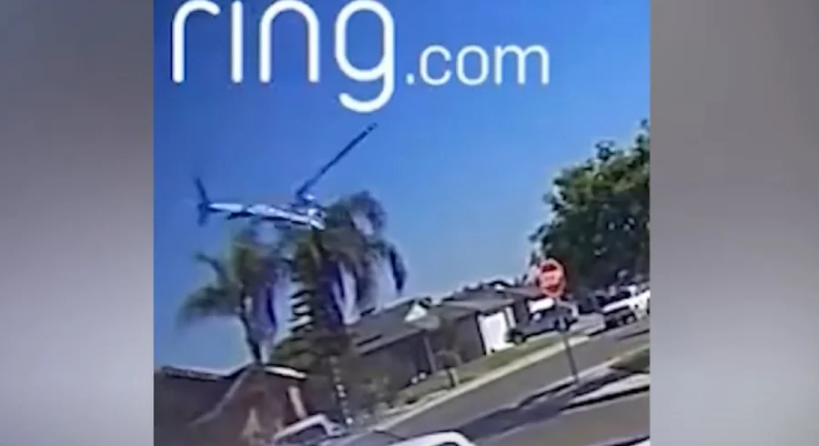 Συγκεκριμένα, το μικρό ελικόπτερο, πιθανότατα από μηχανική βλάβη, αρχίζει να πέφτει και αφού στροβιλίζεται αρκετές φορές, προσκρούει πάνω σε σπίτι, προκαλώντας τον τραυματισμό δύο ανθρώπων.