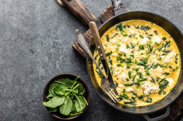Με ένα μαχαίρι ελέγχουμε εάν έχει ψηθεί η ομελέτα στη μέση, την αναποδογυρίζουμε σε μια πιατέλα, την αφήνουμε λίγο να κρυώσει και σερβίρουμε.