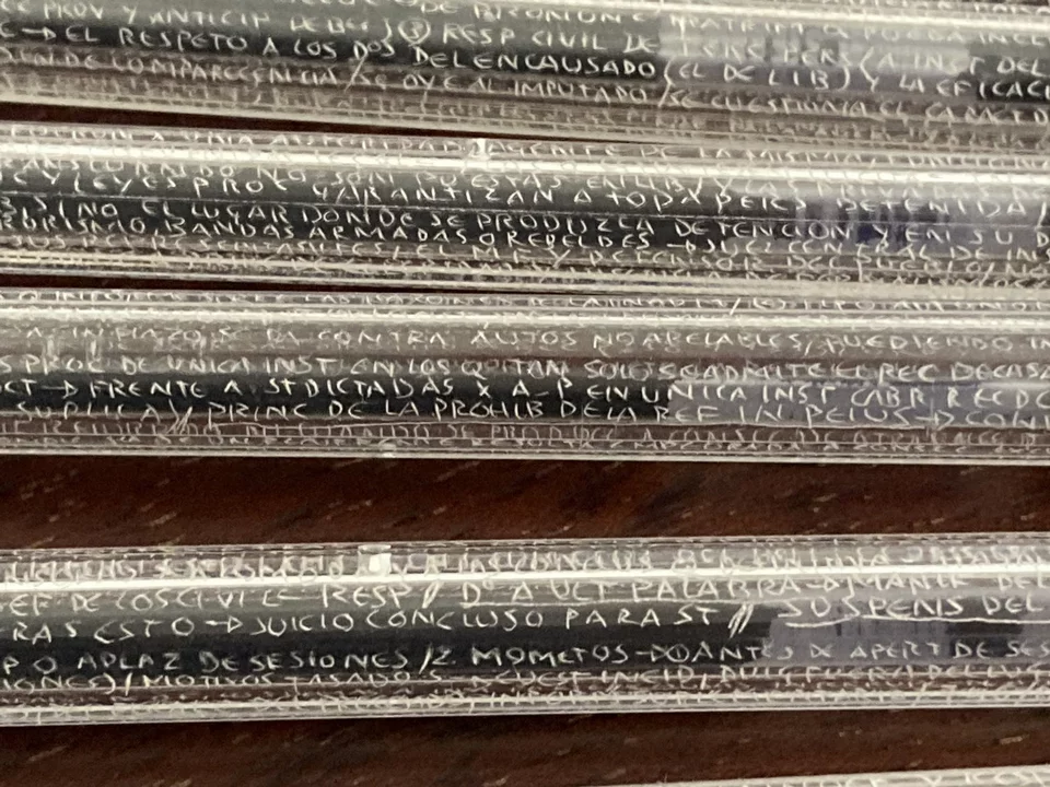 Η Γιολάντα ντε Λούτσι, καθηγήτρια στο Πανεπιστήμιο της Μάλαγα, έδειξε τα στιλό που κατέσχεσαν η ίδια και οι συνάδερφοί της κατά τη διάρκεια της εξέτασης. Σε ανάρτησή της στο Twitter, η καθηγήτρια δείχνει τα 11 στιλό – τα κλασικά bic- χαραγμένα με μικροσκοπικά γράμματα κατά μήκος του σώματός τους.