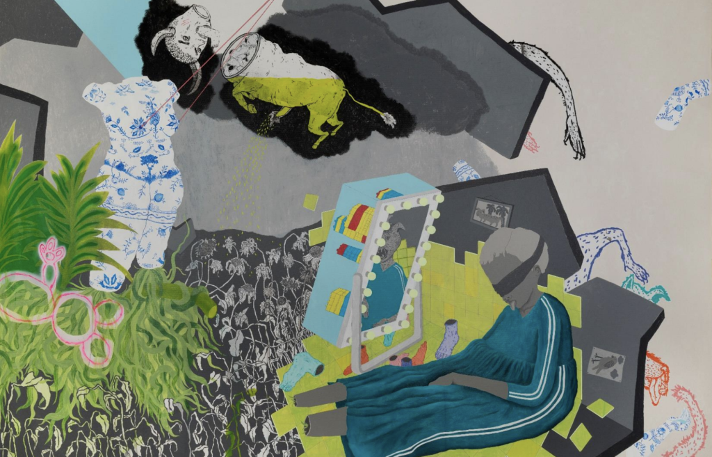 Η Σοφία Ροζάκη παρουσιάζει δύο ζωγραφικά έργα που δημιουργήθηκαν υπό συνθήκες περιορισμού και καραντίνας την περίοδο 2020-21, το ένα ως ανάθεση του 61ου Φεστιβάλ Κινηματογράφου Θεσσαλονίκης, και το δεύτερο, μέρος της τελευταίας ατομικής της έκθεσης. Ακροβατώντας μεταξύ βιωμένης εμπειρίας και ονειρικής κατάστασης, τα έργα της εστιάζουν στην πολυπλοκότητα της ταυτότητας, της μνήμης και της σωματικότητας, σε μία προσπάθεια επανεξέτασης και επανοικειοποίησης του τραύματος. Μέσα από ένα πλήθος ετερόκλητων αναφορών, ο θεατής γίνεται μάρτυρας μιας ιδιαίτερης αφήγησης, όπου το οικείο συνυπάρχει με το ανοίκειο και τα όρια μεταξύ τους γίνονται ολοένα και πιο δυσδιάκριτα.