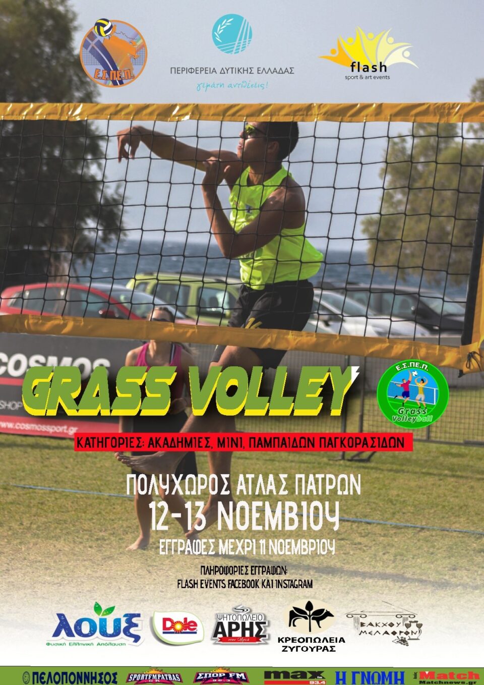 Η Ένωση Σωματείων Πετοσφαίρισης Πελοποννήσου (Ε.Σ.ΠΕ.Π.) σε συνεργασία με την Περιφέρεια Δυτικής Ελλάδας διοργανώνουν για πρώτη φορά στην Πάτρα αγώνες GrassVolley, το Σαββατοκύριακο 12 & 13 Νοεμβρίου 2022, αποδεικνύοντας ότι το βόλεϊ είναι άθλημα που παίζεται παντού. Οι αγώνες θα πραγματοποιηθούν στις εγκαταστάσεις του πολυχώρου άθλησης του ΑΤΛΑ (τέρμα Οδυσσέως Ανδρούτσου).