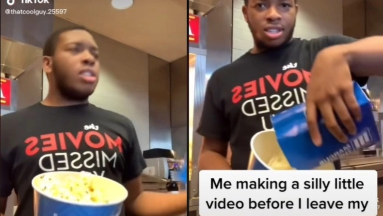 Στο viral κλιπ, το οποίο έχει προβληθεί 13 εκατομμύρια φορές, ο χρήστης του TikTok προσποιείται ότι είναι πελάτης που παραγγέλνει το σνακ του κινηματογράφου.
